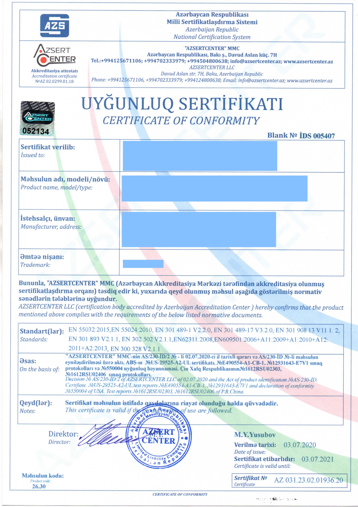 EMC Certification Body accredited by AZAK – AZERBAIJAN