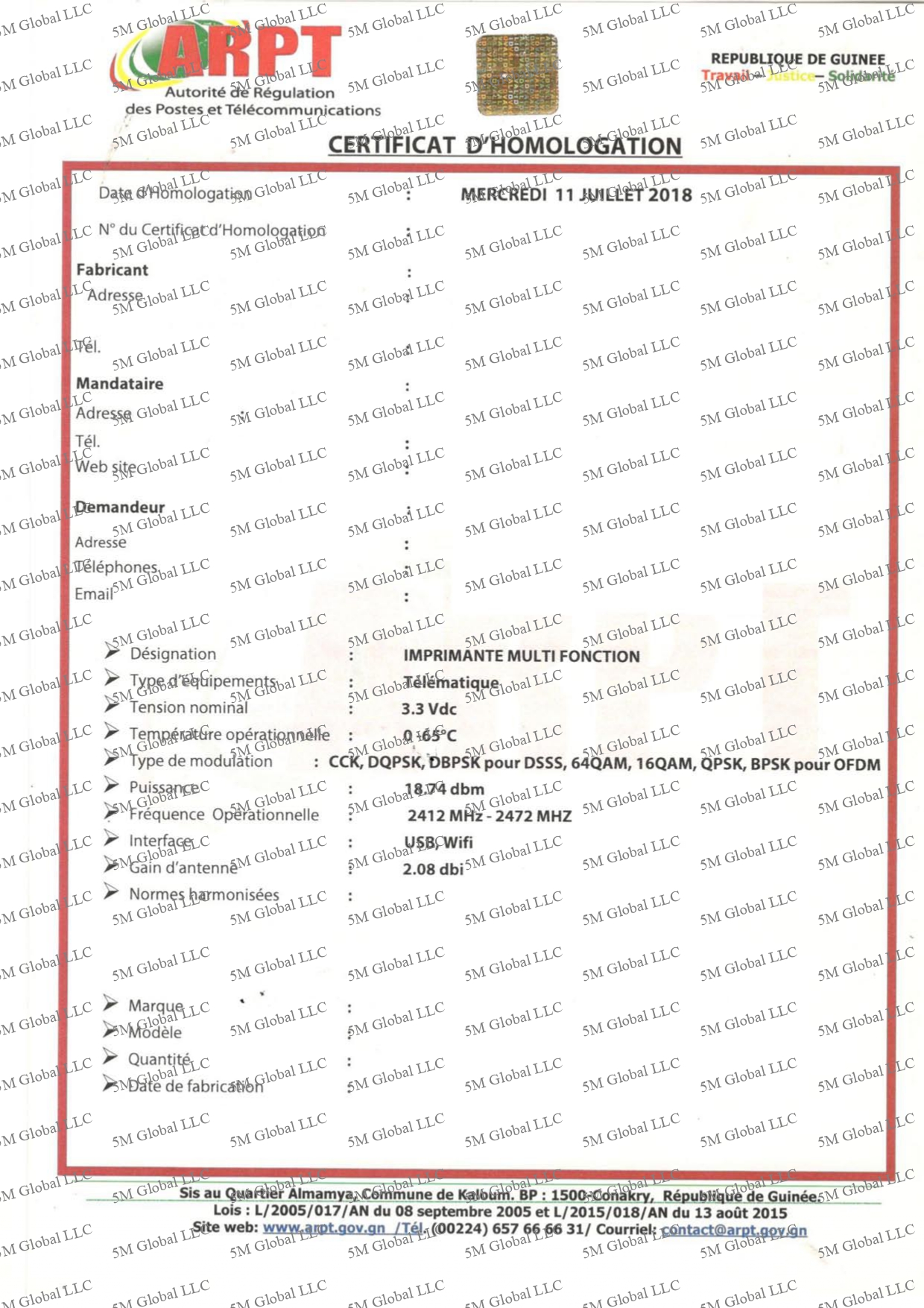 5M Global provides a complete service for Regulatory Type approval in Guinea .