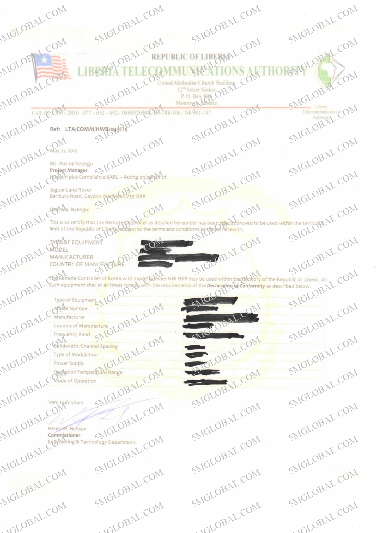 5M Global provides a complete service for Regulatory Type approval in Liberia.