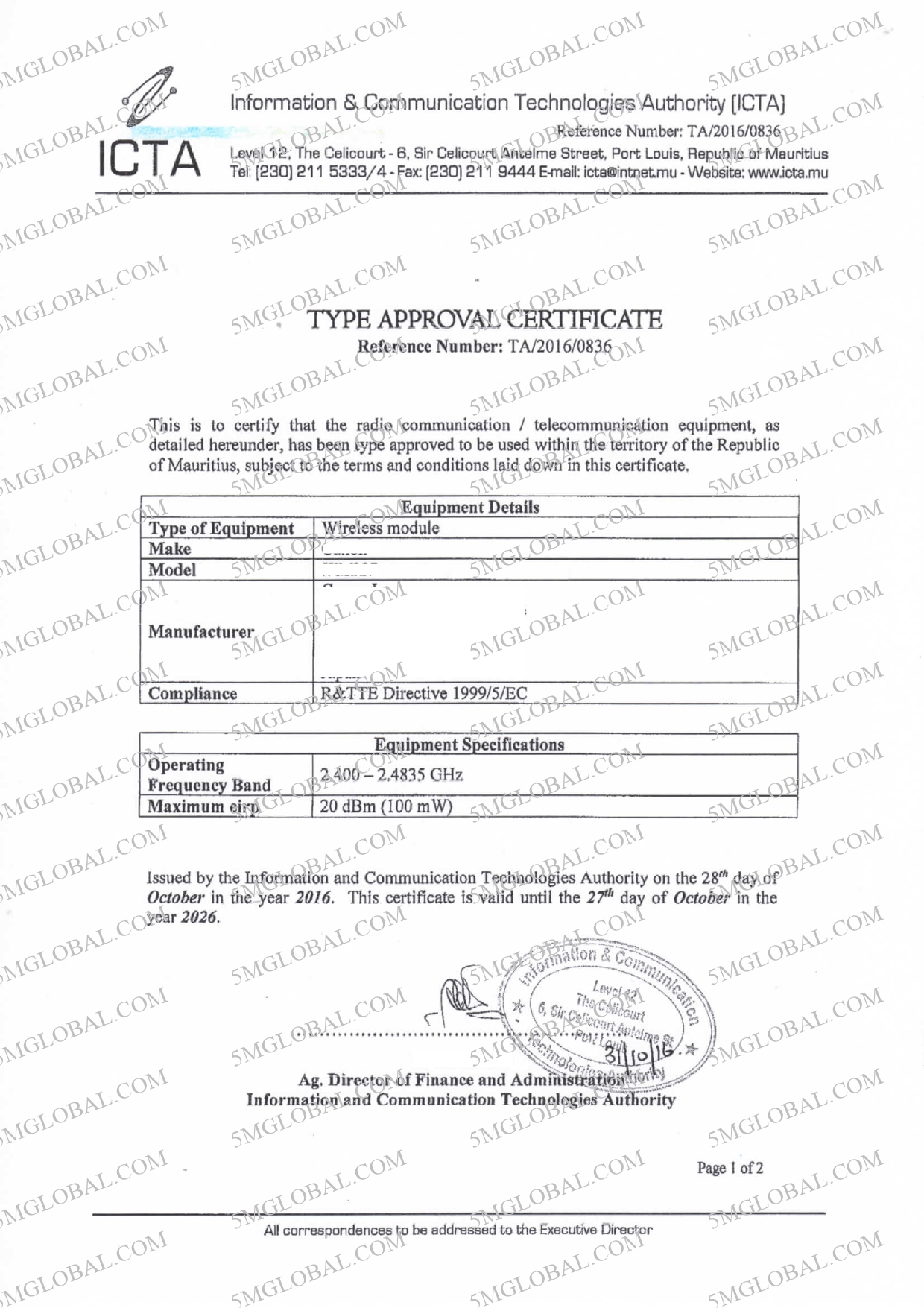 We have an excellent working relationship with the officials at Regulatory Authority Information Communication Technologies Authority (ICTA) Mauritius. This means that we can ensure all your applications for regulatory type approval in Mauritius are processed fast and without undue complications. The range of products that we can get type approvals for is extensive and includes products that come under the category of Telecommunications, Wireless, Radio, Short Range devices and IoT devices. Since we started operations, we have done multiple Regulatory Type approvals in Mauritius for various manufactures and Labs. Our specialty is that we have direct contact with the authority through a specific employee in country, who will handle all your Regulatory Type Approval needs.