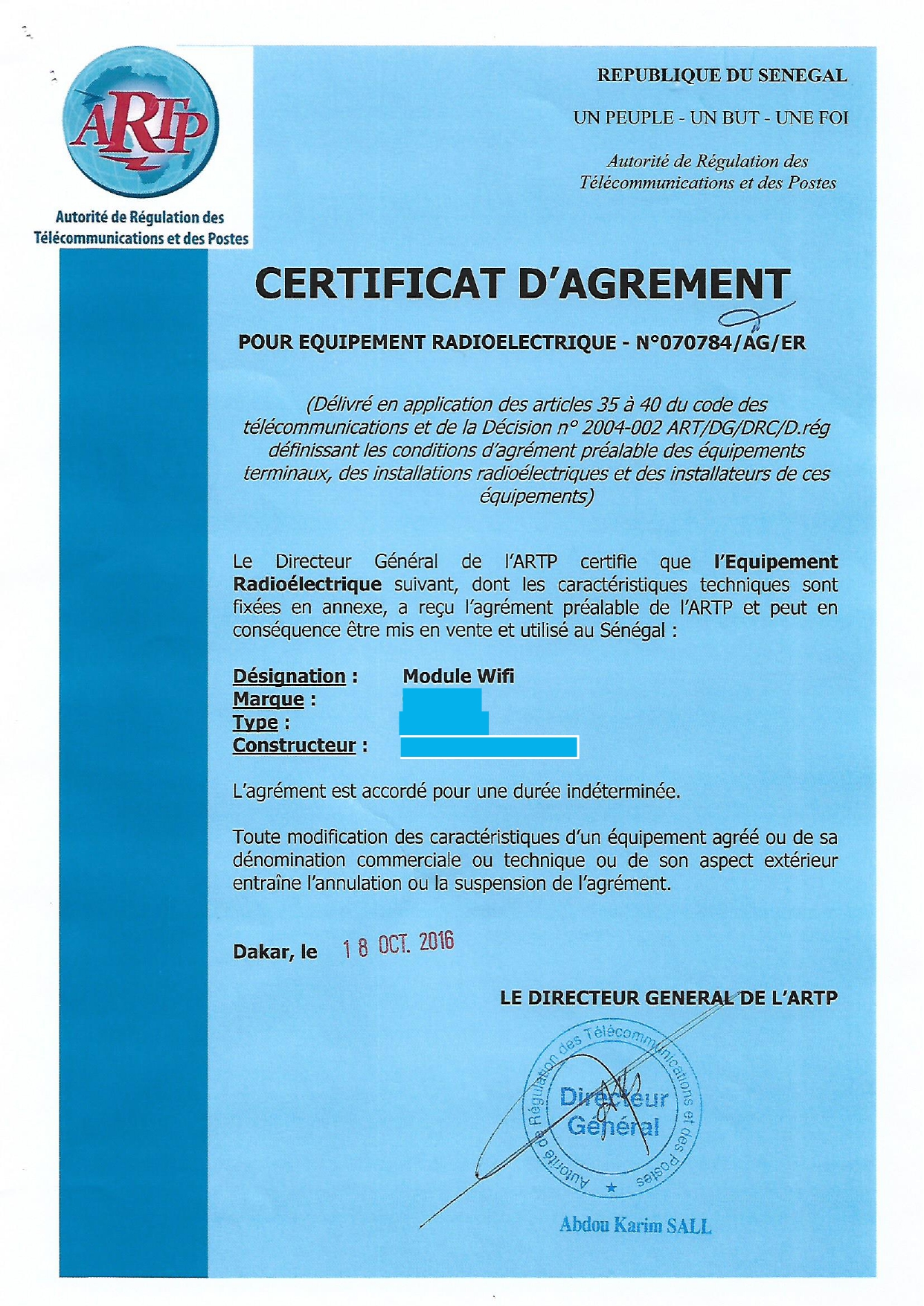 Homologation for Wireless devices Senegal