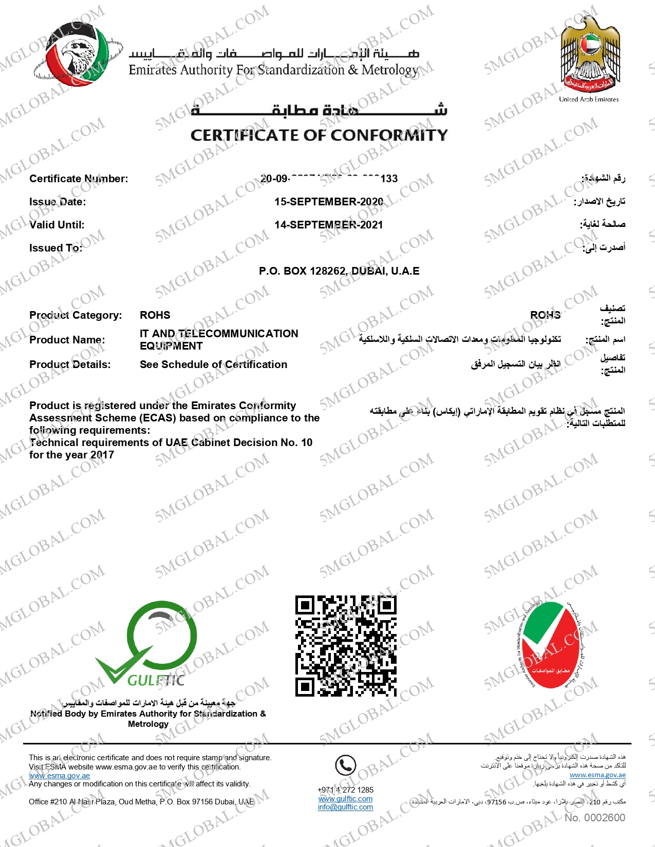 We have an excellent working relationship with the officials at UAE Telecommunication & Digital Government Regulatory Authority (TDRA) and ESMA for safety. UAE TRA Type Approval is mandatory for sold the devices in UAE ,and UAE TRA type approval for Telecom, wireless, Radio Devices, We can ensure that your type approval application is processed fast and without undue complications.
